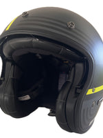 HJC V31 Byron Retro Jethelm Der V31 ist ein offener Helm im Retro-Stil, der aus einer fortschrittlichen Glasfaserverbundschale besteht, um einen leichten Helm zu bieten. Dieser ¾ Helm verfügt über eine integriertes 3-Position Sonnen-Visier...