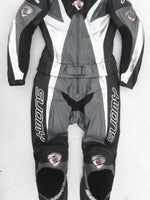 Zweiteiler in Grau / Schwarz / Silber aus Rindsleder