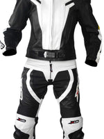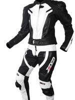 - High-quality leather suit with ergonomic cut